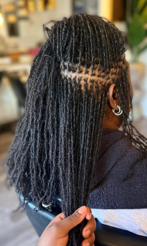 Let’s talk about Sisterlocks™ – the fabulous style that celebrates the natural beauty of your hair with a touch of versatility! Whether you’re into roller sets, a pop of color, braid-outs, Bantu knots, updo’s, or the wild and free look, Sisterlocks™ are your perfect match. Plus, they’re an awesome choice if you’re ready to part ways with relaxers. As your hair grows, you can snip off those straight ends, it’s all good.
